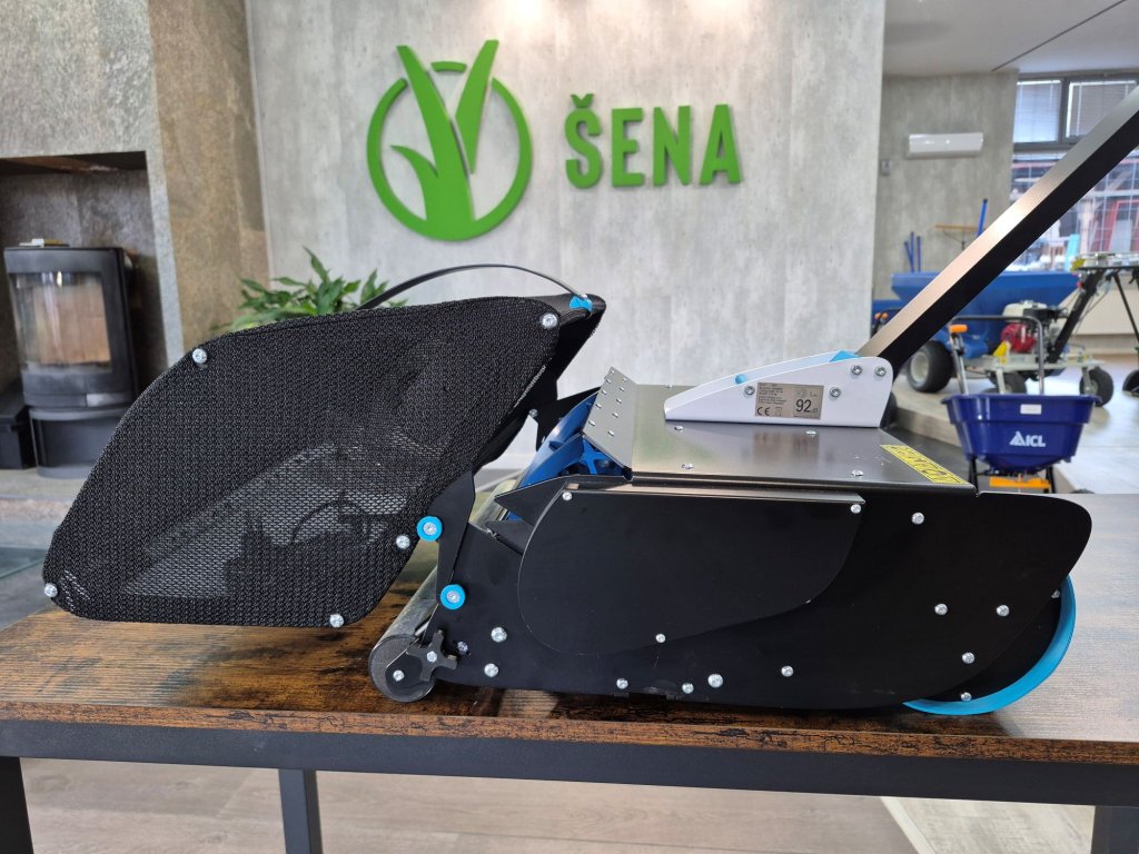 Koš na trávu je extrémně lehký z hliníkové konstrukce potažený vysoce odolnou síťovinou proti prodření. Koš lze snadno manipulovat jednou rukou, což výrazně zrychluje a zlehčuje jeho vysýpání. Koš je umístěn před sekačkou, díky tomu ho lze velmi snadno sejmout ze sekačky a opět vrátit. Díky umístění vpředu má obsluha vyšší postavy dostatek prostoru i pro dlouhý krok.